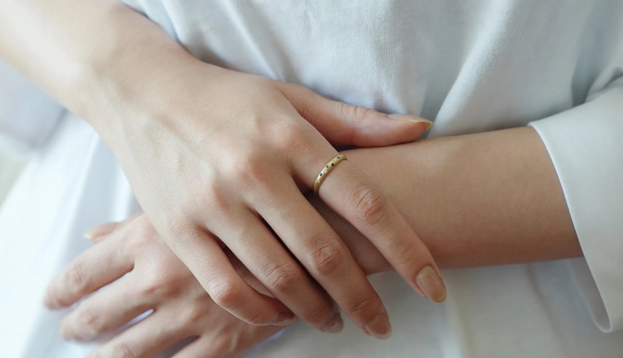 We offer complimentary resizing within ±3 sizes from the size in stock. If you wish to have your ring resized, please proceed to the purchase screen of the item and enter the desired size in the remarks form in the shopping cart. Production period: about 4 weeks