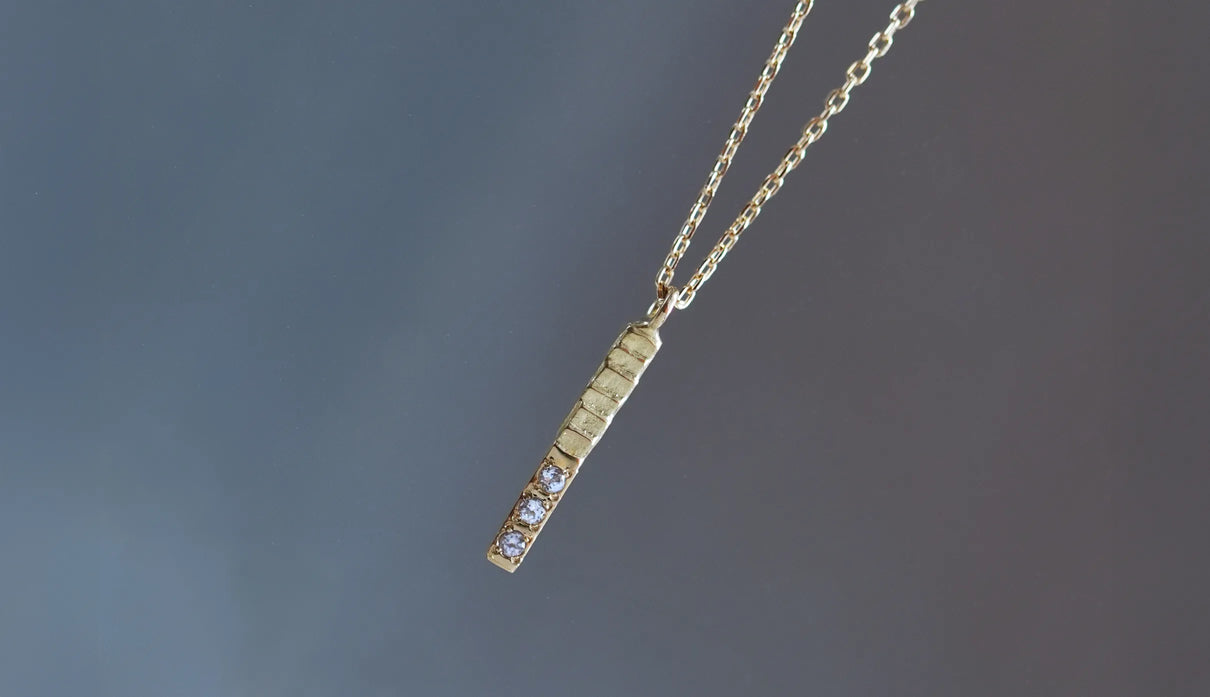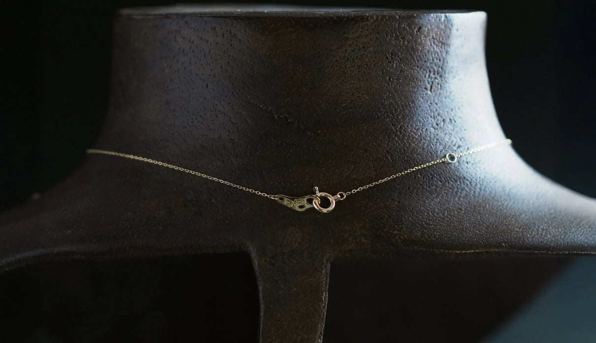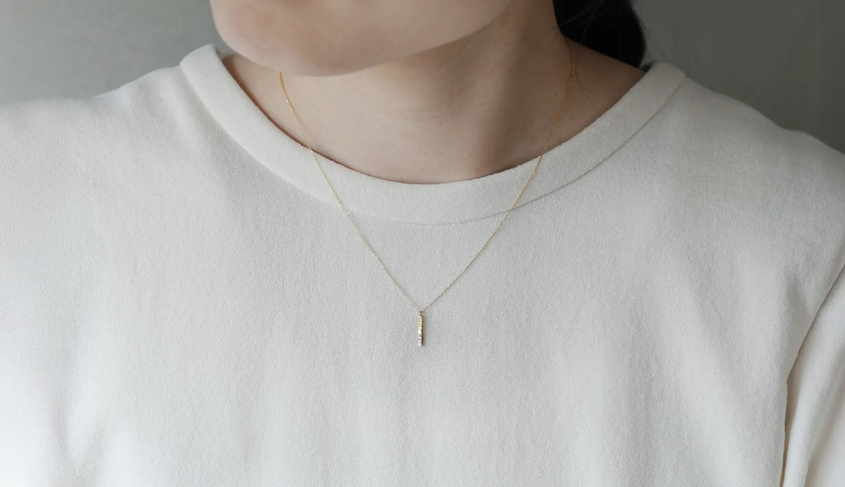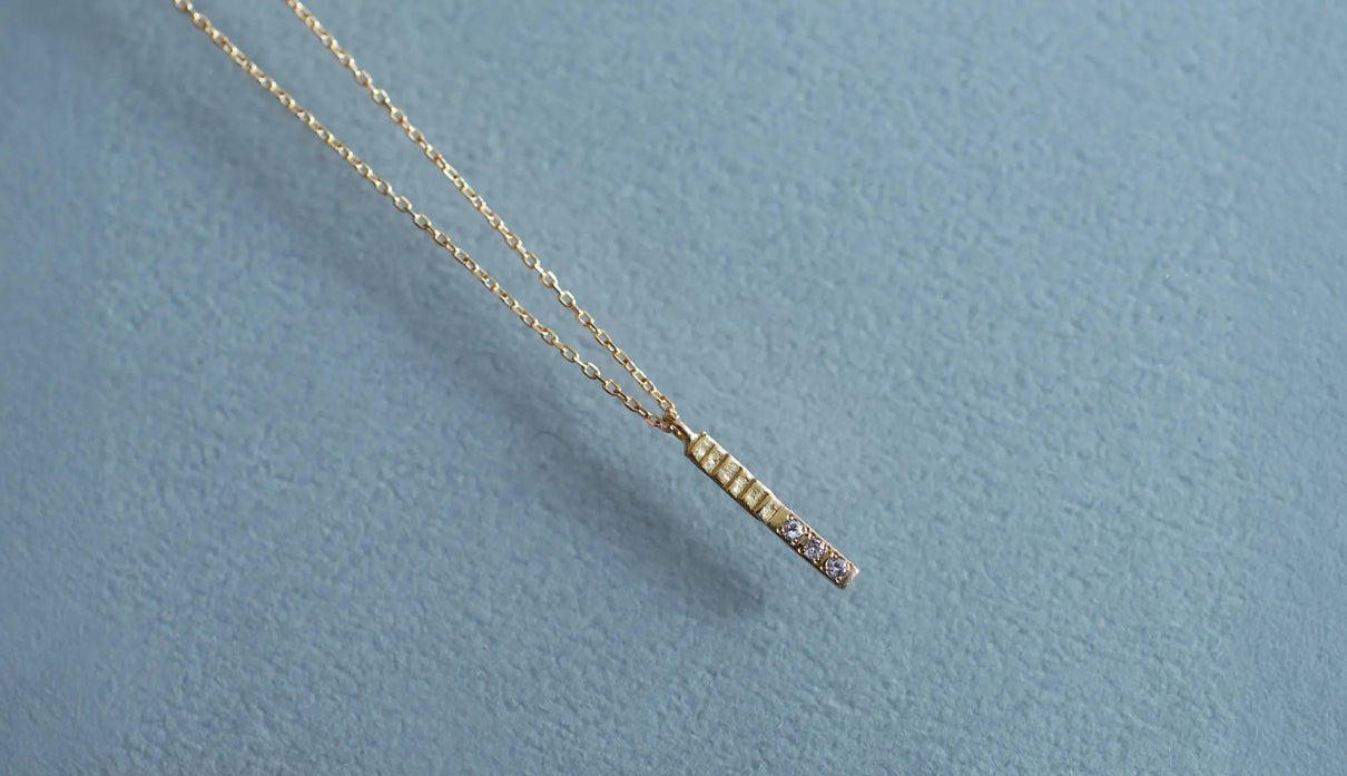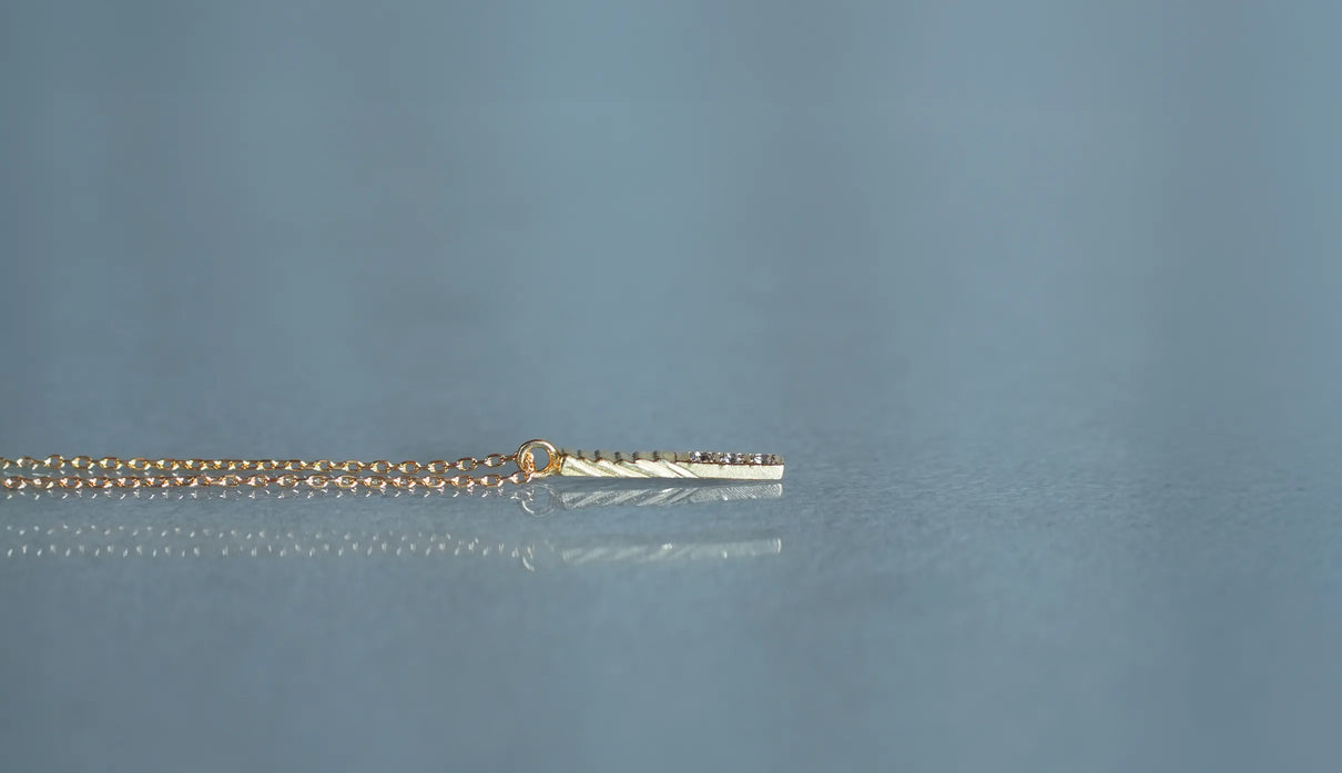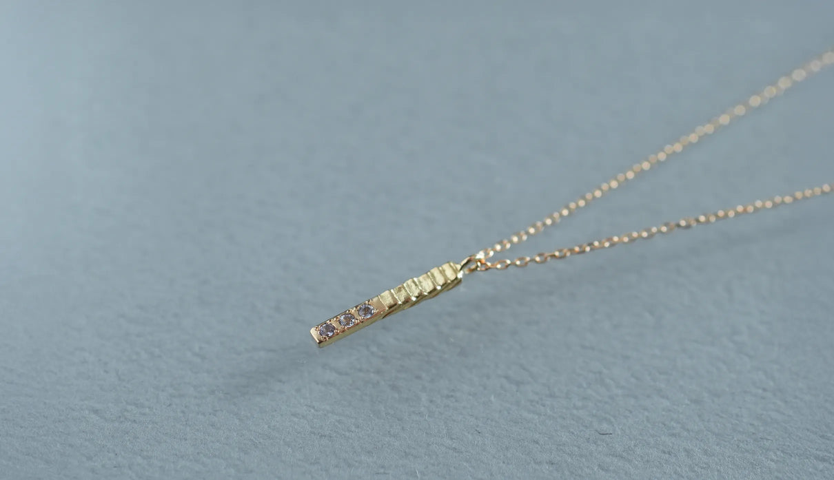 "If you pause and look, the things that matter are always there, unchanged." This necklace, from the 2023 collection "Unknown knowns," is designed with tanzanite. The asymmetrical motif, composed of multiple layers representing the accumulation of time and experience, is accented with sharp, polished surfaces to reinforce its multi-faceted appearance. Three softly shining tanzanites are set at the tip, adding a delicate sparkle that brightens the neckline. Simple, yet with a touch of individuality, it can be worn alone or layered with long necklaces. Tanzanite, also known as the birthstone of December, makes this a perfect gift and a meaningful talisman for those born in December.