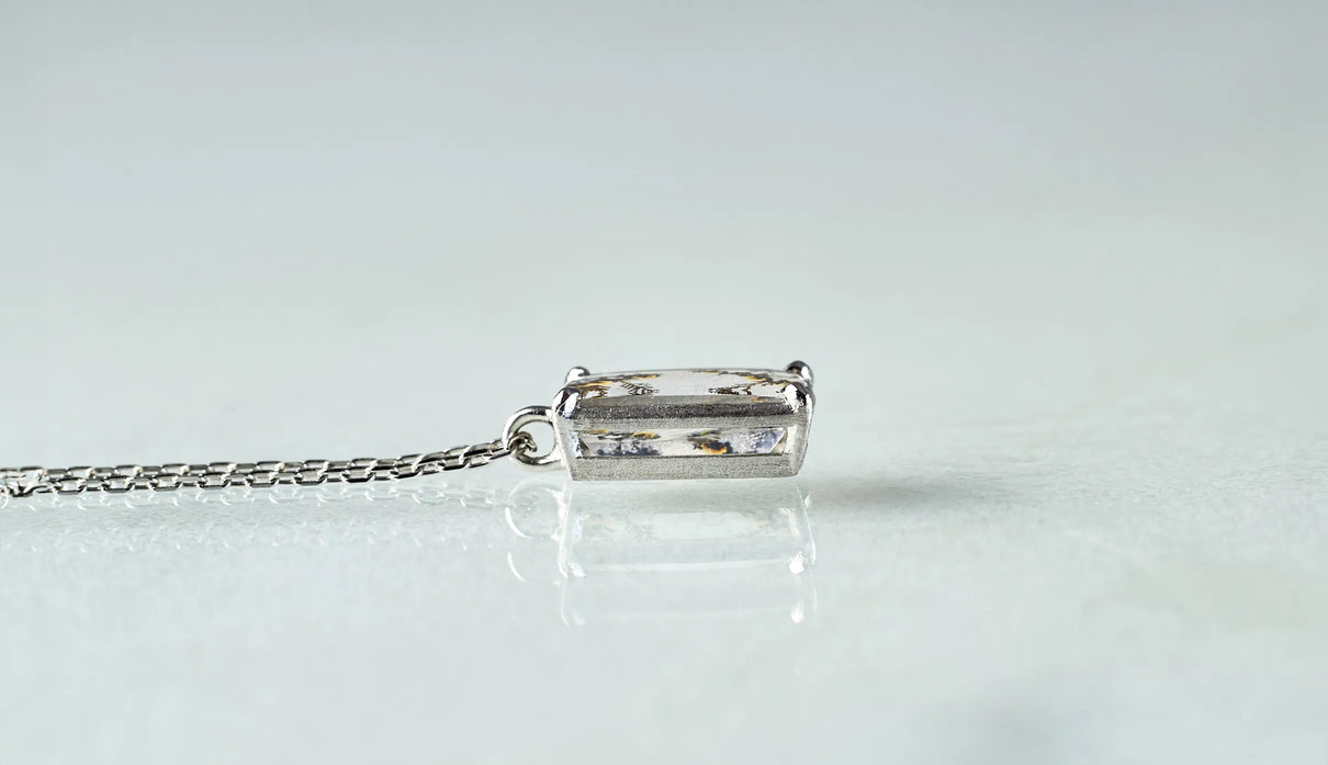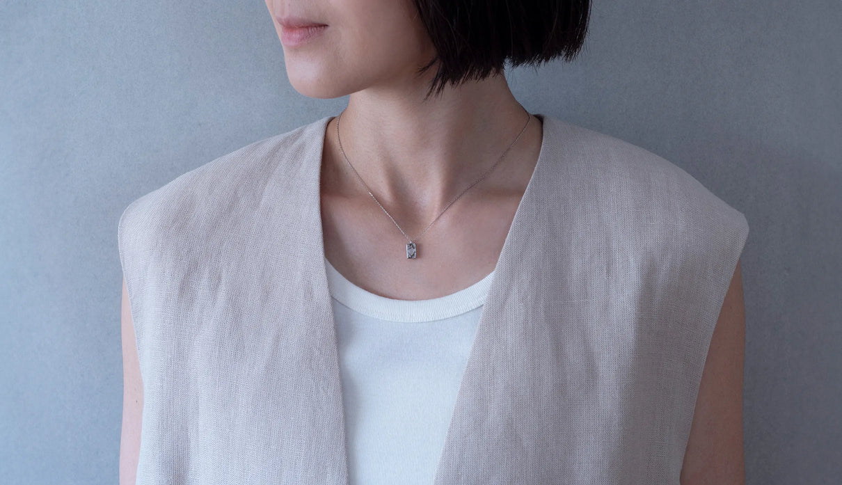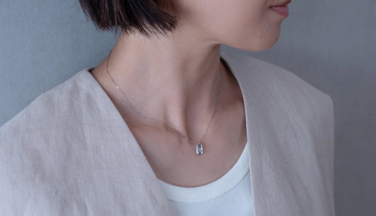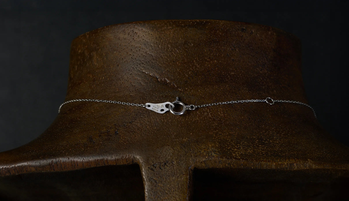 A one-of-a-kind necklace crafted from Dendritic Agate, featuring a fantastical pattern reminiscent of tree branches. These patterns are natural formations created as manganese dioxide, iron oxide, and other minerals infiltrate the stone and recrystallize. The branch- and flower-like inclusions spread gracefully within the crystal, as if purposefully arranged, creating delicate and intricate expressions. The stone, reminiscent of a miniature painting, is enhanced by a platinum setting with a simple matte texture. With a wearable volume, this necklace adds a touch of elegance and visual interest to everyday outfits.