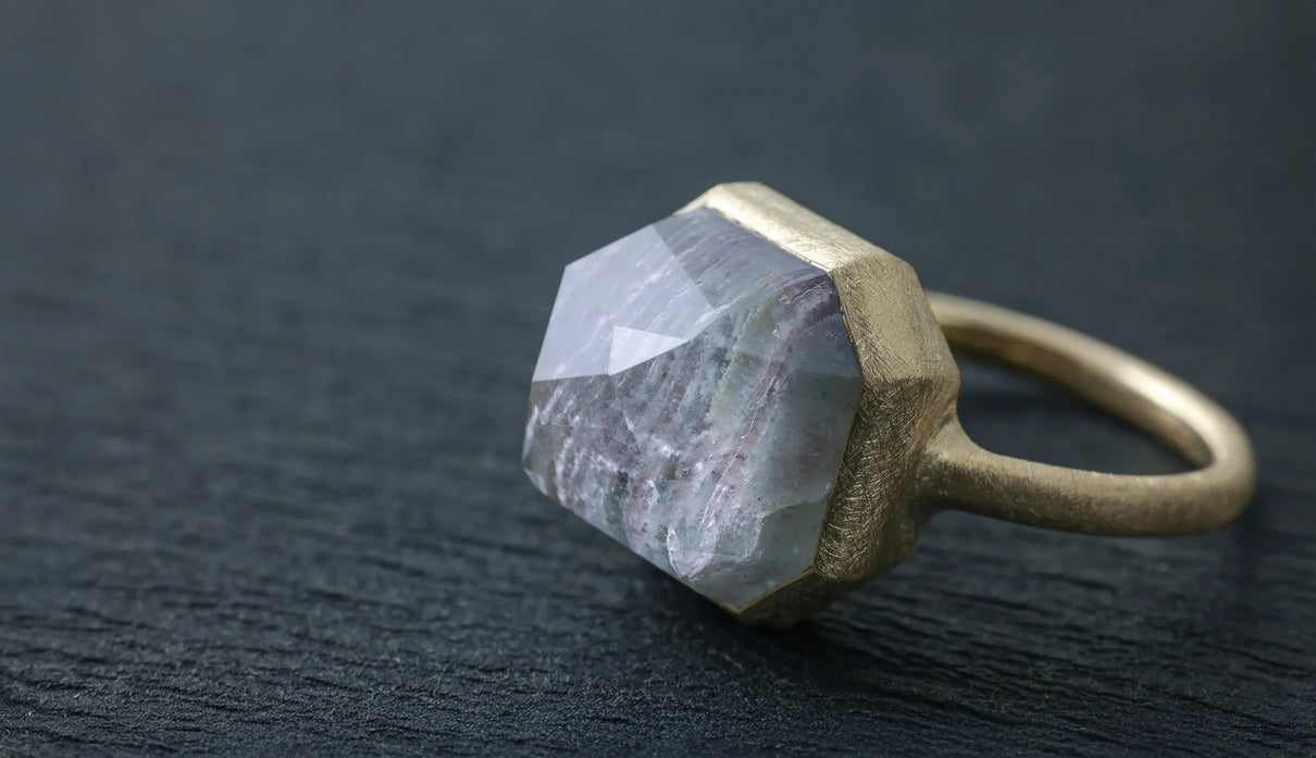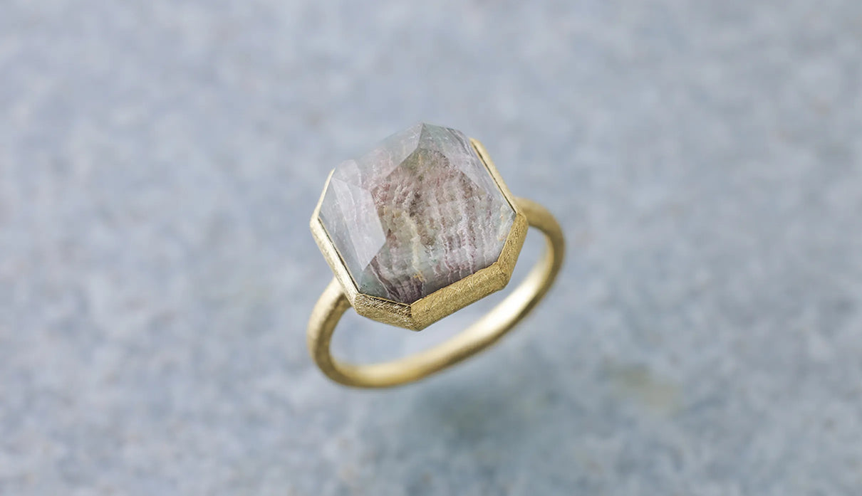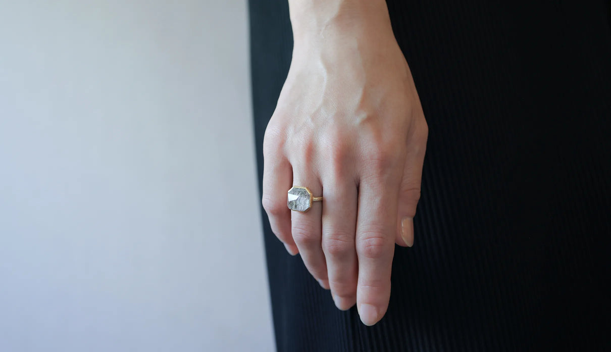 A collaboration series with gem cutter Canna Oshiro, a rare practitioner of traditional hand-cutting techniques. Entrusting her with rough stones carefully selected by Ryui, she creates truly one-of-a-kind jewels through her distinctive hand-cutting approach. The loose stones, polished with Oshiro's unique aesthetic sense and precise craftsmanship—drawn from the inspiration she gains through an earnest dialogue with each expressive rough stone—are all imbued with a free and generous allure. These special pieces of jewelry are born from enveloping the irregular yet beautifully faceted, hand-polished stones in open, flowing designs, resulting in creations where artisanal skills unite in perfect harmony.