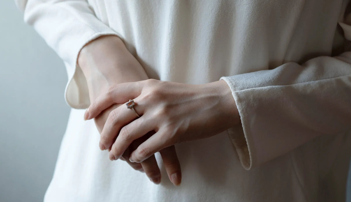 Ryui's unique antique finish is applied to K10 "Smoky Gold." This calm, pale gold, reminiscent of K18 white gold, gradually deepens with wear, developing a personal patina over time.